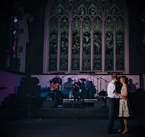 The excited couple had asked us to learn 'Tunnels' by Arcade Fire for their First Dance, and it was an absolute pleasure for us to perform this for them as the acoustic duo on the huge stage under the beautiful stain glass window!